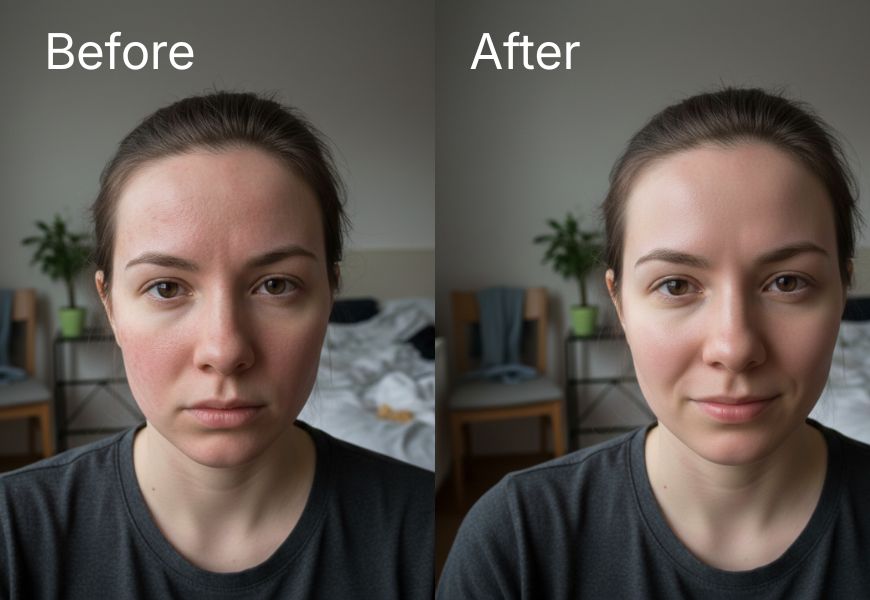 People with sensitive skin report less tightness, less dry shedding around the nose and cheeks, and smoother texture within days.
